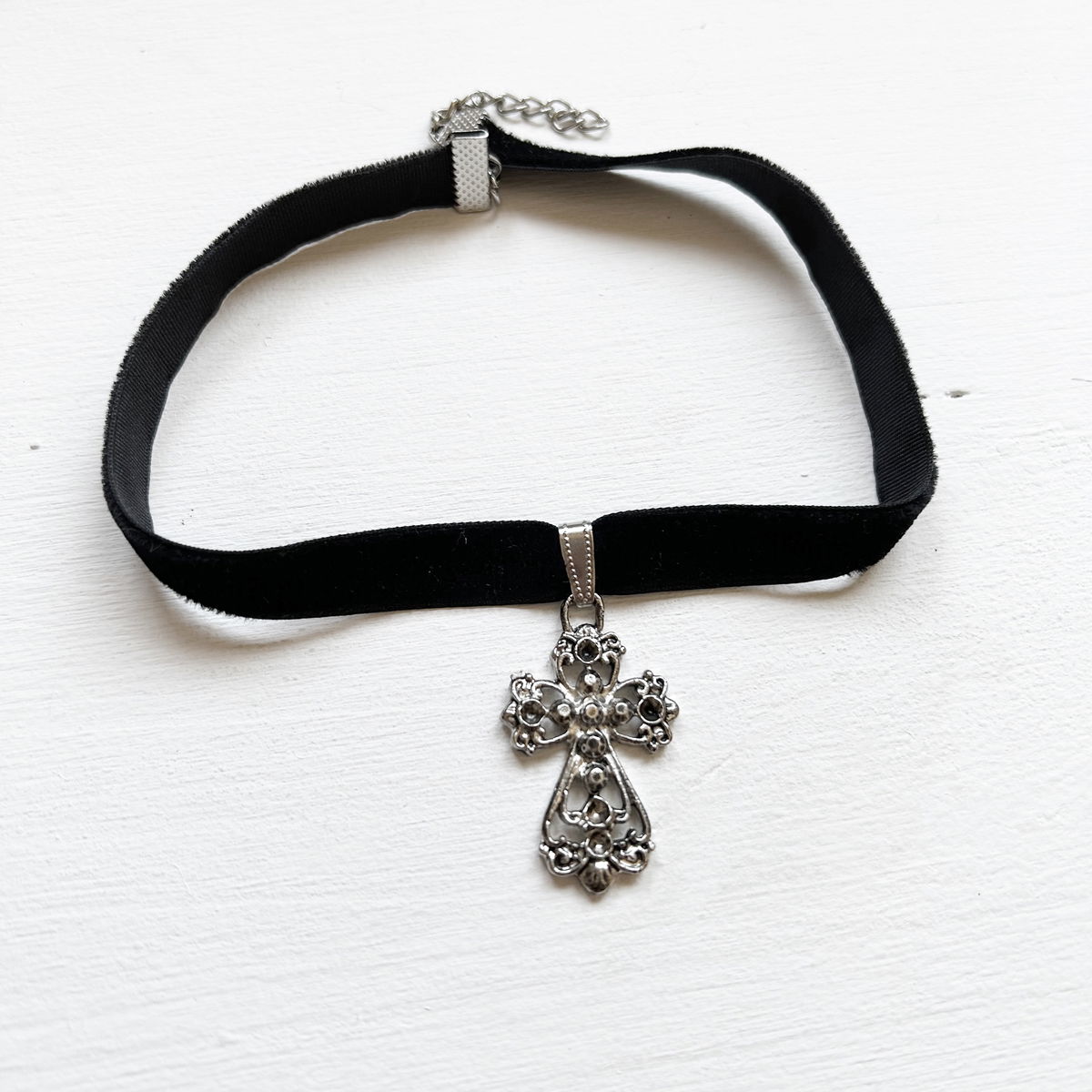 gargantilla de terciopelo con dije niquelado fantasía