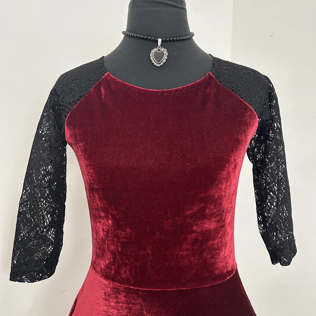 tela: terciopelo elastizado con mangas de encaje