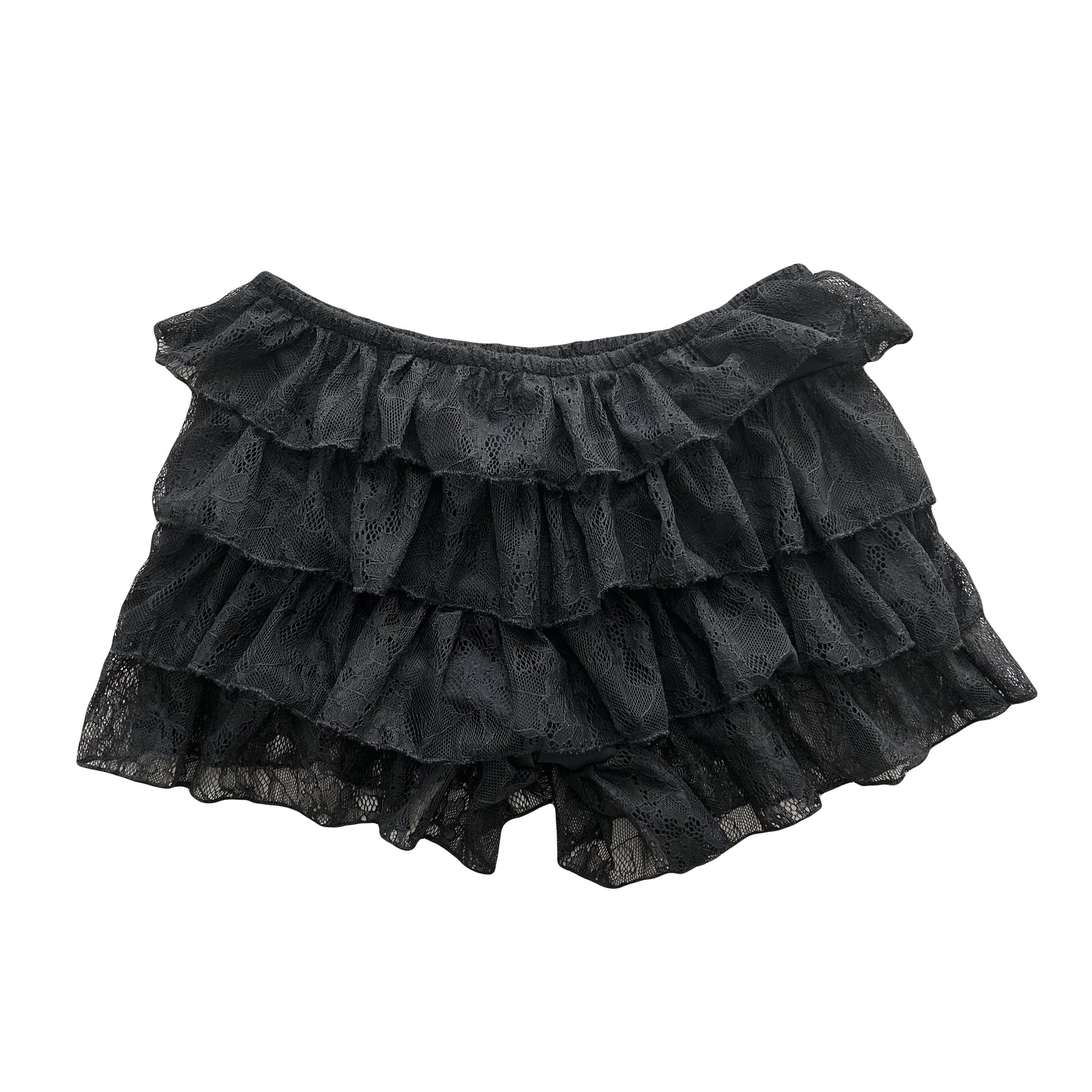 short tipo pollera con voladitos de encaje