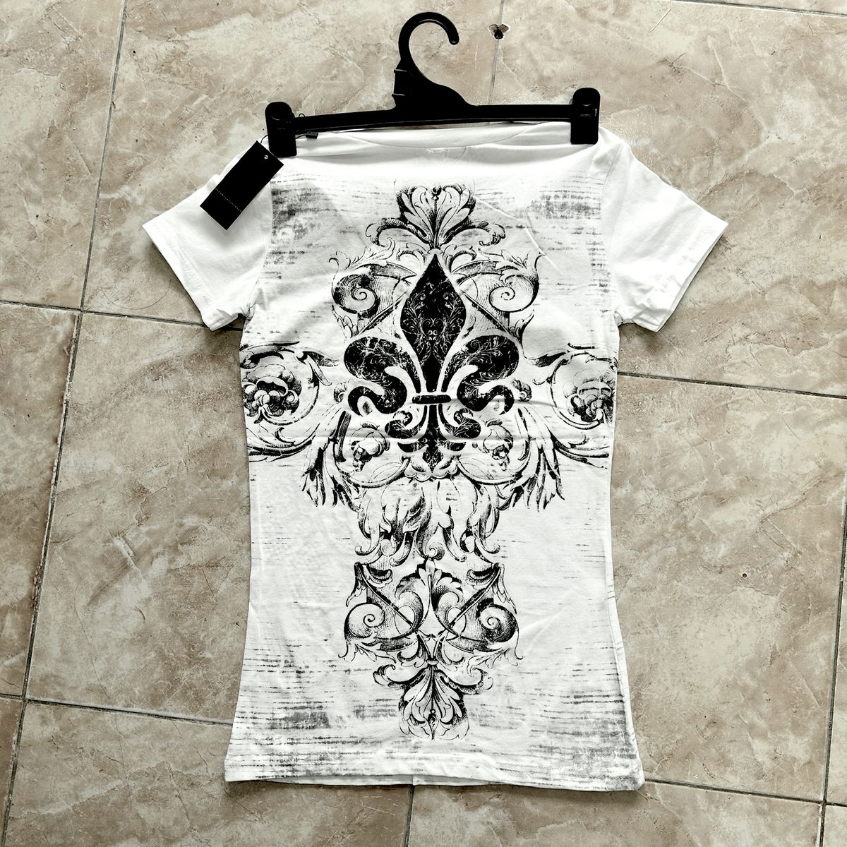 tela: algodón elastizado con estampado de strass y serigrafía