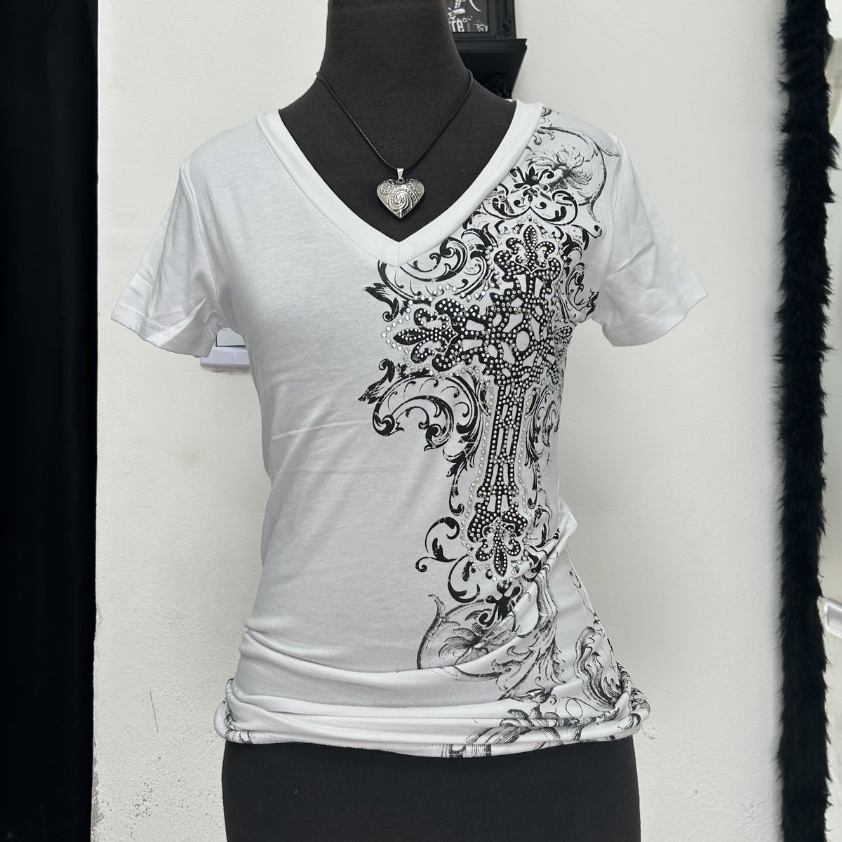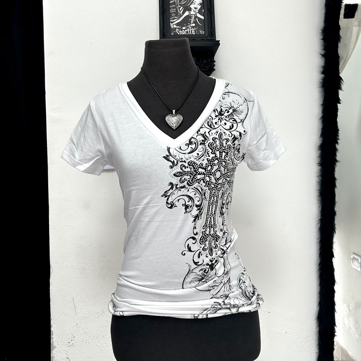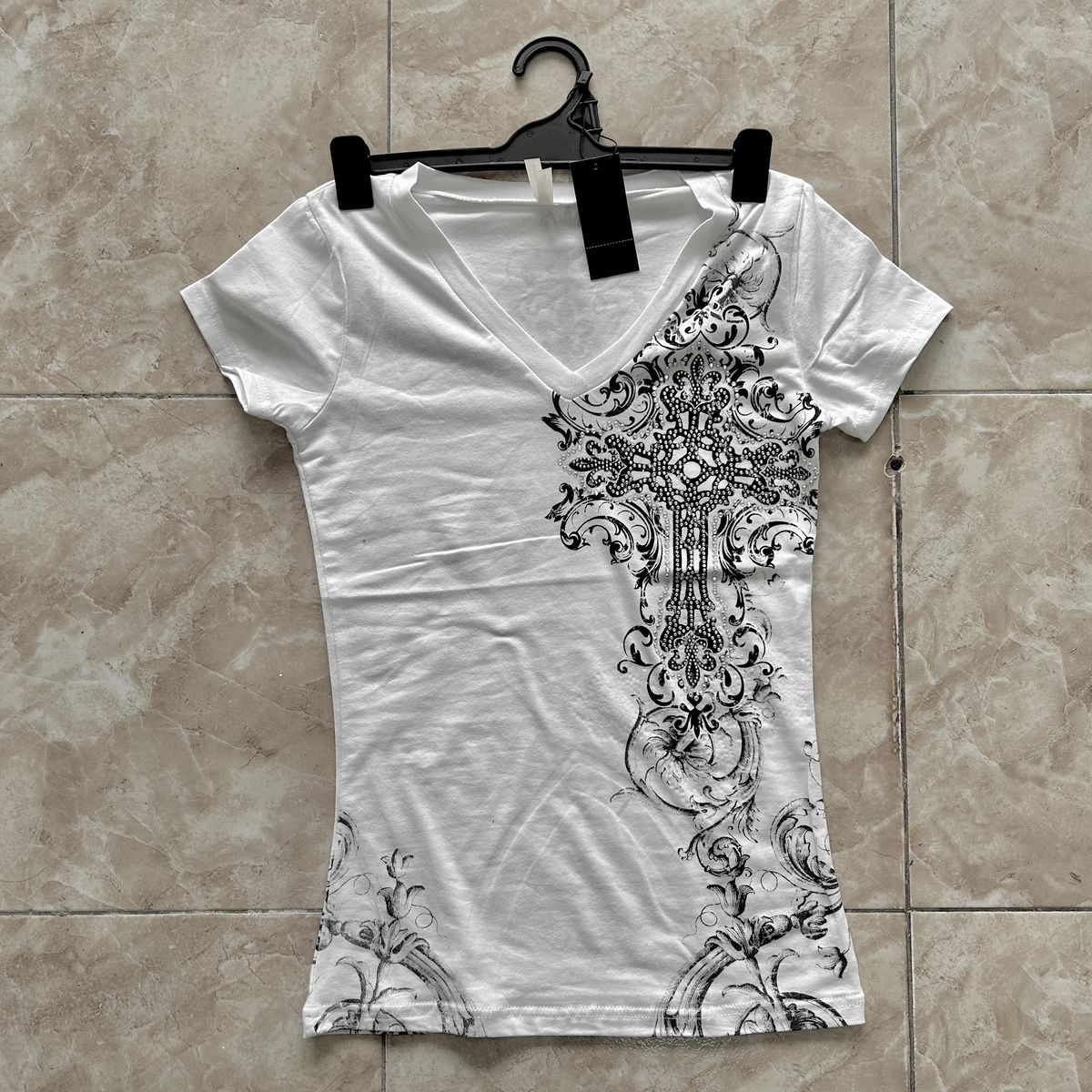 tela: algodón elastizado con estampado de strass y serigrafía