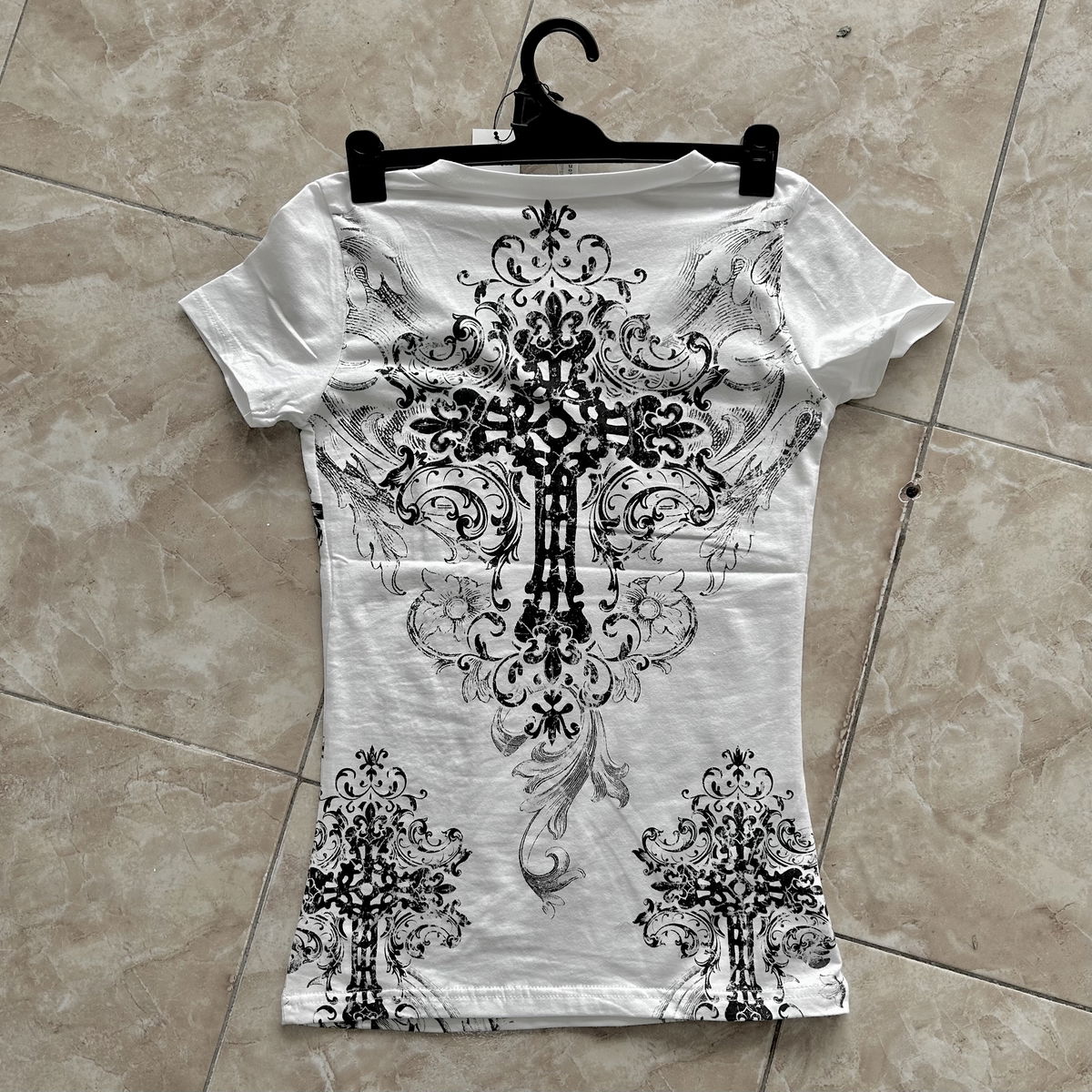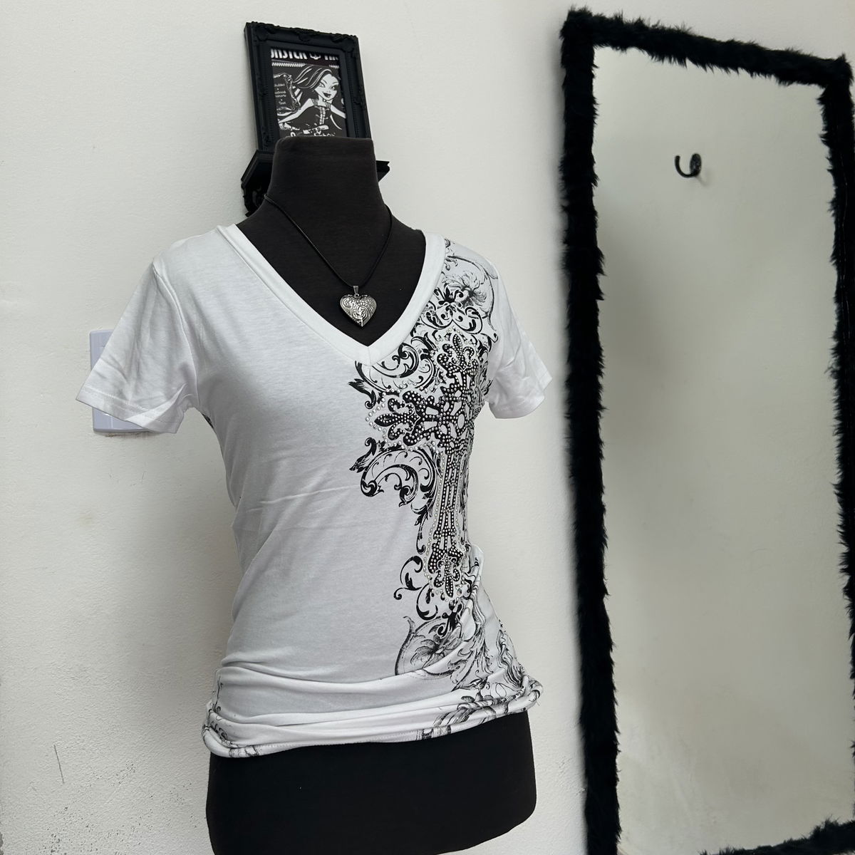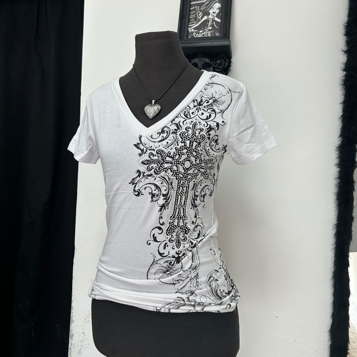tela: algodón elastizado con estampado de strass y serigrafía